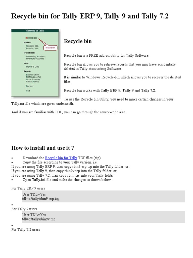 Tally Erp9 Manual How To Get Recycle Bin In Tally Erp 9 How to install the tdl file in tally. hello friends in today's videos i have shared how to install recycle. here you can download the tdl file for recycle bin in tally erp 9 software. Go to gateway of tally. tips for getting the most out of the recycle bin for tally erp 9. this little. How To Get Recycle Bin In Tally Erp 9.
